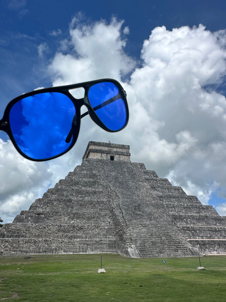 Looking through blue, whether it's a filter or a color itself, evokes feelings of calmness , peace , and serenity which can be seen as a form of energy. Psychologically, blue can lower heart rate and calm the nervous system, promote clarity, and boost creativity. the view and enhance the Vibes with these deep blue mood enhancing lenses.