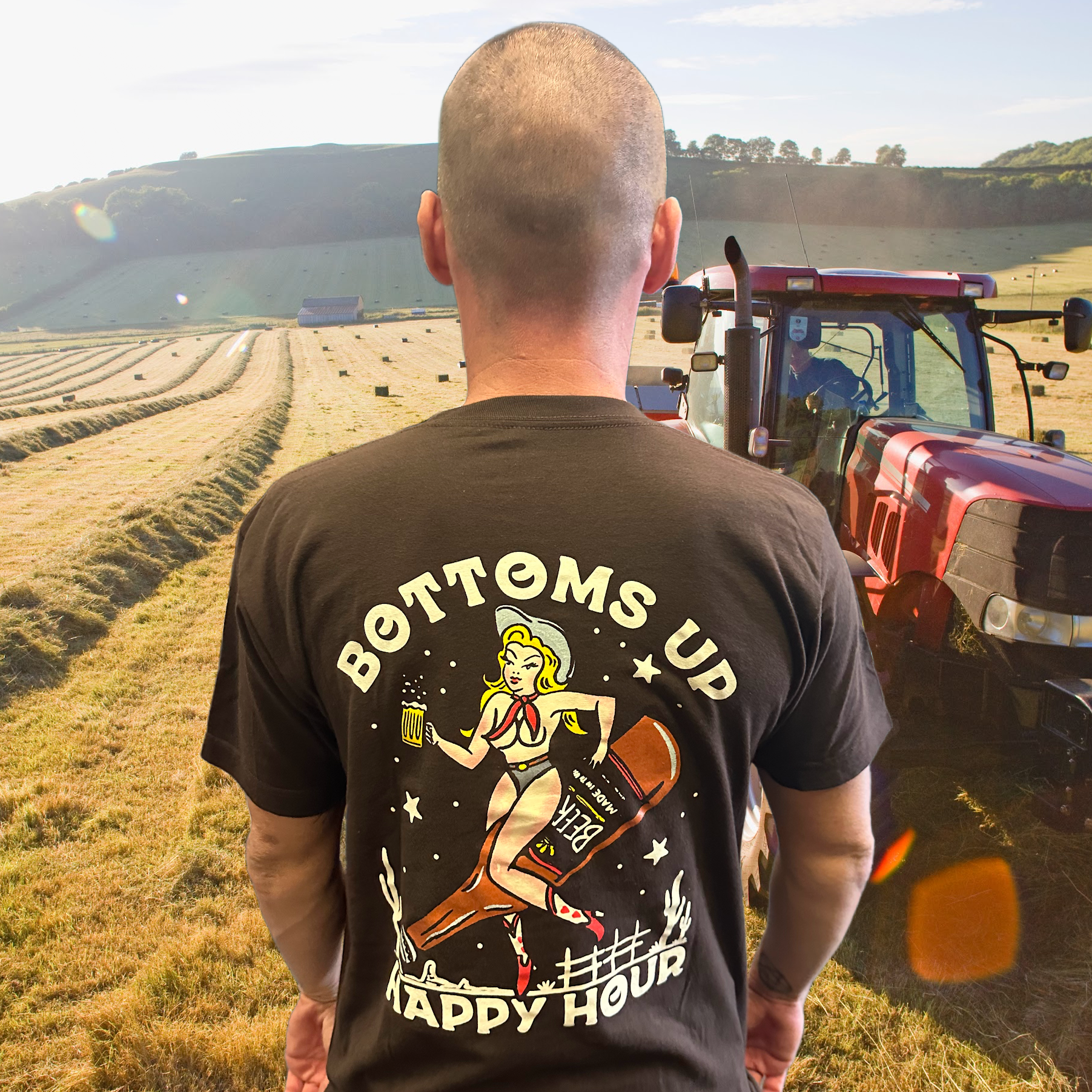 Happy Hour "Bottom's Up" Logo Printed on Back
